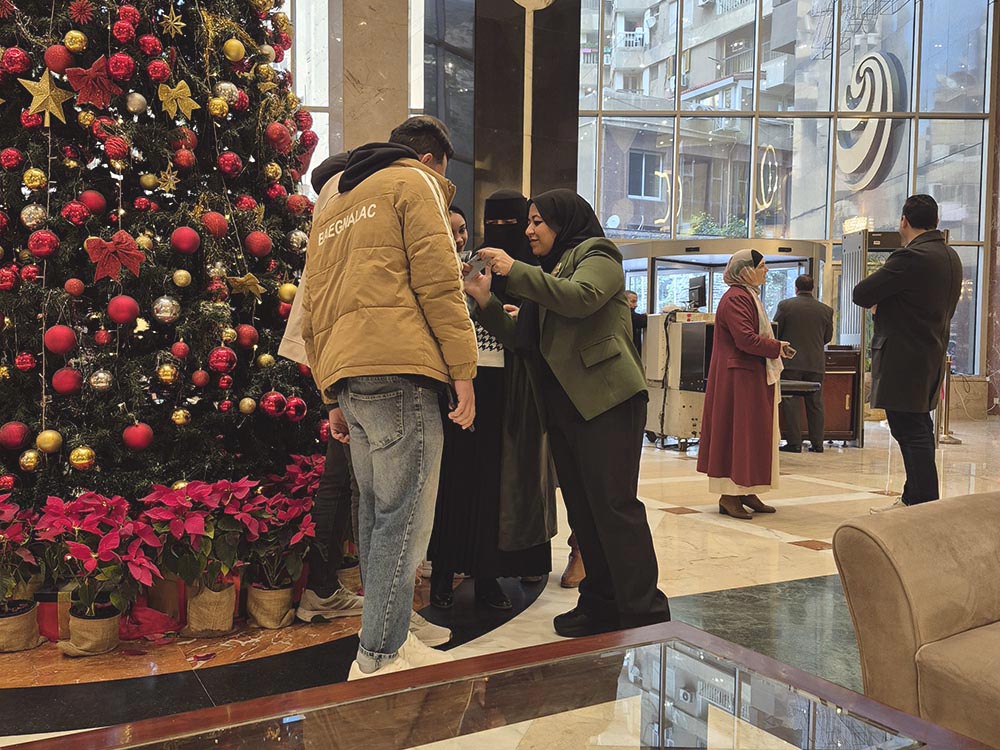 Below are some photos taken in a Cairo, Egypt hotel in December 2025 of a group of Gulf tourists - themselves engaging in a group photo. What is so perverse is that one of the subjects being photographed is a lady wearing a niqab - as you will see. And then, laughably, the photographer showing her subjects the photos she took of the group. What is the point of the lady in the niqab being photographed?